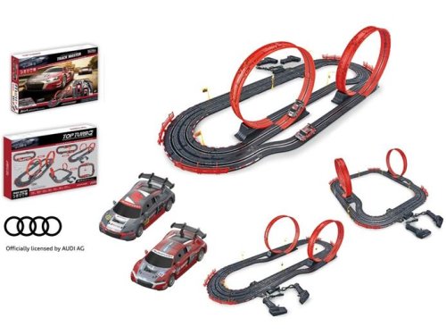 Oficiálně licencovaná autodráha MaDe přináší napínavé závodní zážitky do každého pokoje. Díky délce 560 cm snadno vytvoříte různé varianty tratě, ať už preferujete technické úseky nebo dlouhé rovinky. Atraktivní vzhled ve stylu vozů AUDI a kvalitní zpracování potěší malé i velké fanoušky automobilových závodů.