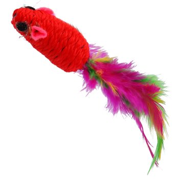 Bavlněná myška s pírky. Hračka, které Vaše kočka neodolá. Pírka lákají k aktivní hře.
