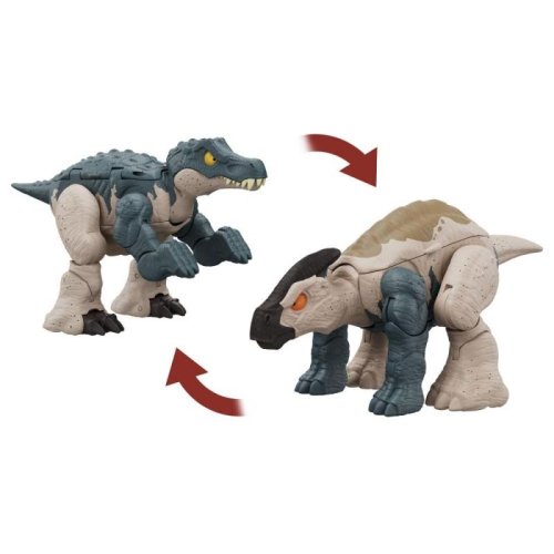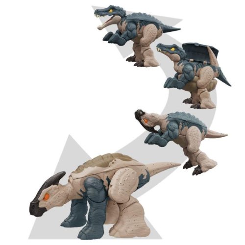 Chcete připravit dětem velké vzrušení a dobrodružství s Jurským světem? Dinosaurus od Mattel s transformací býložravce v masožravce vše umožní. Proměna je v 10 snadných krocích. V této řadě mohou děti nalézt 4 různé figurky dinousaurů o velikosti zhruba 17 cm na 12 cm. Tyrannosaurus rex se promění s Ankylosaurem ve 2 různých dekorech. Carnotaurus se promění se Stegosaurem a Baryonyx s Parasoralofem. Každá figurka má charakteristické znaky jednotlivých druhů dinosaurů.