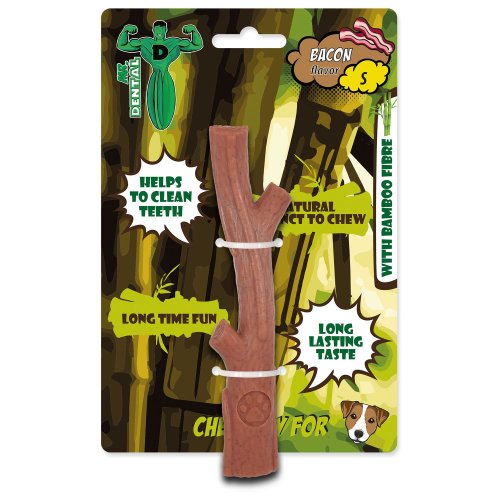 Žvýkací hračka Mr. Dental Bambone ve tvaru klacku se slaninovou vůní.