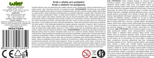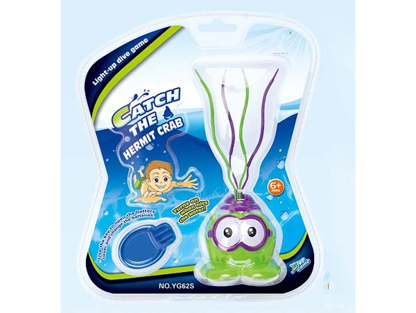 Hračka na potápění, krab poustevníček. Vydává světelné efekty. Rozměry hračky 18x8x22 cm. Baterie 3xAG3, součástí balení. 3 varianty - zelená, oranžová, růžová.