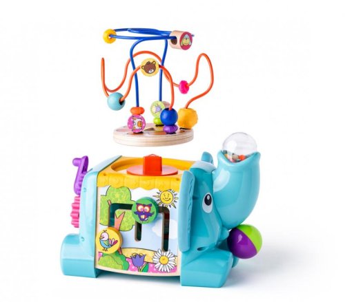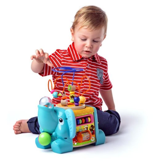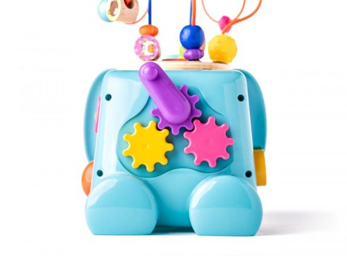 Didaktický slon značky Niny nabízí dětem nespočet herních variant. Barevné provedení zaujme každého malého objevitele. Zatáhněte za míč v pusince slona, pusťte a sledujte korálky v chobotu. Kličkou na zadečku rozpohybujete ozubená barevná kolečka. Na boku slona naleznete malé bludiště se sovičkou a ptáčkem. Na druhém boku je umístěno počítadlo s barevnými korálky a váleček s notami. Na zádech nosí slon nádherný labyrint, který můžete odejmout a děti si s ním mohou hrát samostatně. S touto hračkou děti procvičují nejen jemnou motoriku, trpělivost, přesnost, barvy, ale i soutěživost.