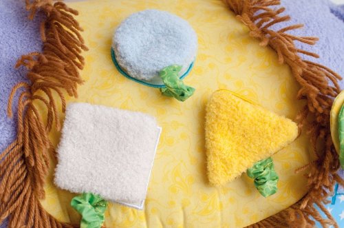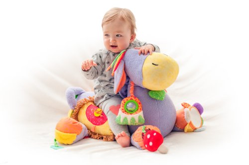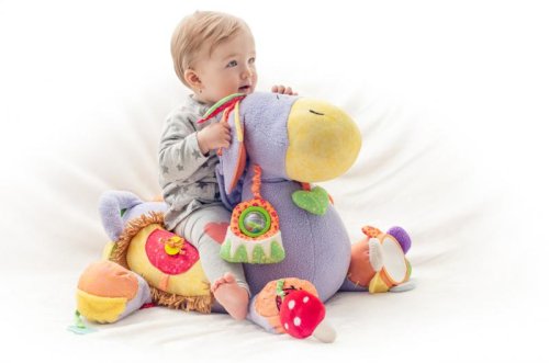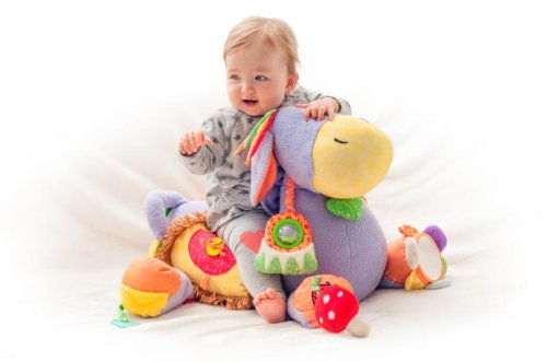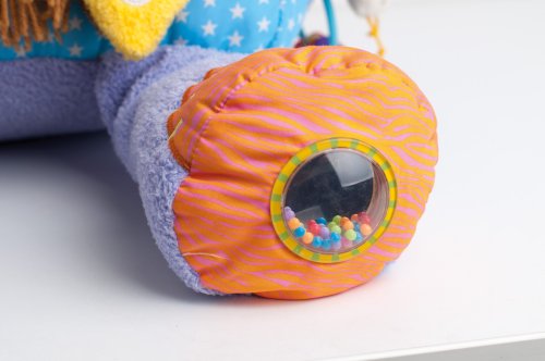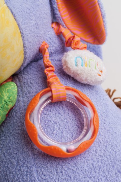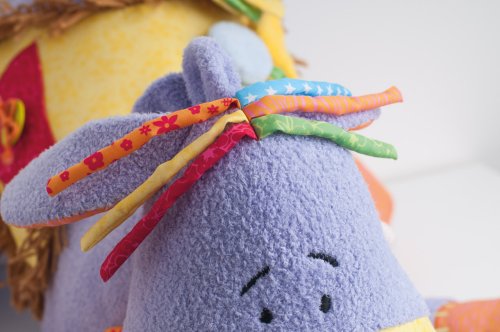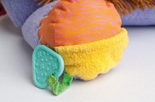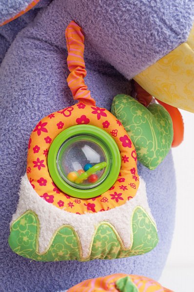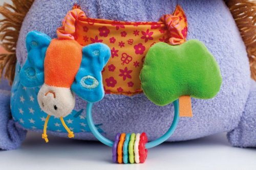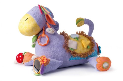 Plyšové hrací centrum v podobě oslíka Lakiho je určené pro všechny malé zvídavé děti. V jeho ocásku je všitý materiál, který při dotyku vydává zvuk mačkaného papíru. Všechny části jeho těla obsahují další hrací prvky jako jsou kousátka, pískátka a chrastítka. Na přední nožičce je umístěno zrcátko vyrobené ze speciální bezpečnostní fólie. Na hřbetě jsou připevněny tvary se suchými zipy, které pod sebou skrývají obrázky stimulující zvědavost dítěte. Hračka je určená pro nejmenší děti, které si hrají vleže s jednotlivými hracími prvky i pro děti starší, které se mohou po oslíkovi válet, sedět na něm a přitom si s ním i hrát.