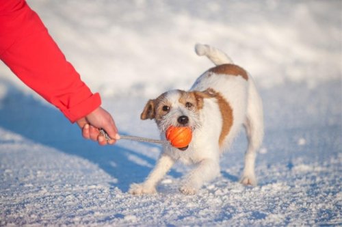 LIKER CORD 5 - odolný míček s provazem, hračka pro střední a větší plemena psů.