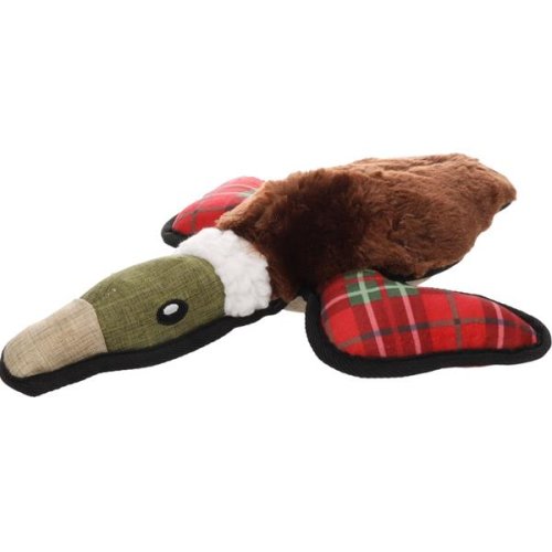 Vánoční hračka pro psy ve tvaru kachny je vyrobena z plátěné tkaniny a hebkého plyše. Pro větší potěšení ze hry obsahuje kachna pískátko. Rozměry (cca): 31 × 32 × 8 cm Materiál: polyester Barva: hnědá, červená, zelená Upozornění: Hračka není určena dětem. K použití pouze pod dohledem. Hračku pravidelně kontrolujte a v případě poškození přestaňte používat.