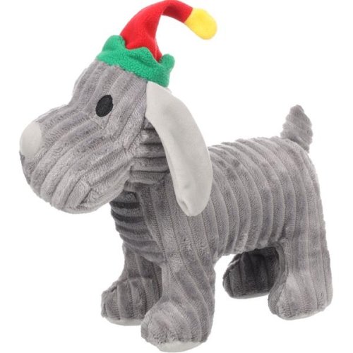 Hračka pro psy ve tvaru pejska s barevnou vánoční čepičkou je vyrobena z plyše s manšestrovou úpravou. Pro větší potěšení ze hry obsahuje pes pískátko. Rozměry (cca): 12 × 25 × 22 cm Materiál: polyester Barva: šedá Upozornění: Hračka není určena dětem. K použití pouze pod dohledem. Hračku pravidelně kontrolujte a v případě poškození přestaňte používat.