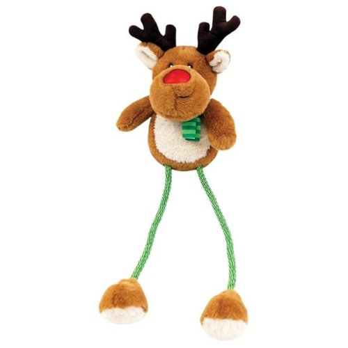 Roztomilá vánoční hračka pro psy – sob Ronny z hebkého plyše s dlouhýma provazovýma nohama – je ideální hračkou pro přetahování a lomcování i mazlení ve chvílích odpočinku. Pro větší vzrušení ze hry obsahuje pískátko. Rozměry (cca): 78 × 20 × 17 cm Materiál: plyš, provaz Barva: hnědá Upozornění: Není určeno dětem. K použití pouze pod dohledem. Hračku pravidelně kontrolujte a v případě poškození přestaňte používat.