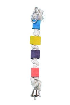 Dřevěná hračka z pevného a odolného materiálu, který vydrží i nápor papoušků se silnými zobáky.
