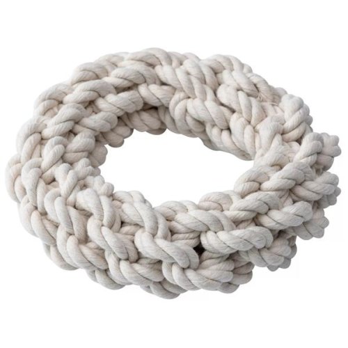 Bavlněné přetahovadlo pro psy ve tvaru kruhu je spletené z pevných přírodních provázků. Hodí se na přetahování, aportování i kousání. Během hry přirozeně čistí chrup a přispívá ke zdraví zubů a dásní. Rozměry (cca): Ø 15 cm Velikost: M Materiál: bavlna Barva: bílá Upozornění: Hračka není určena dětem. K použití pouze pod dohledem. Hračku pravidelně kontrolujte a v případě poškození přestaňte používat.