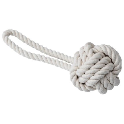 Bavlněné přetahovadlo pro psy spletené z pevných přírodních provázků do tvaru míče je zakončené okem pro lepší úchop při hře. Hodí se pro přetahování, aportování i kousání. Bavlněné provázky během hry přirozeně čistí chrup a přispívají tak ke zdraví zubů a dásní. Délka (cca): 60 cm Velikost: XL Materiál: bavlna Barva: bílá Upozornění: Hračka není určena dětem. K použití pouze pod dohledem. Hračku pravidelně kontrolujte a v případě poškození přestaňte používat.