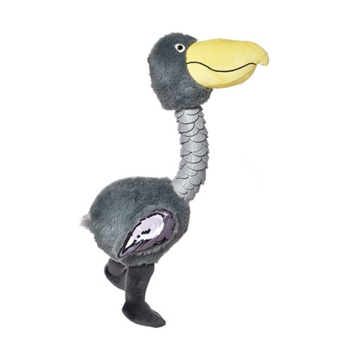 Plyšový pštros s odolným krkem a pískátkem.