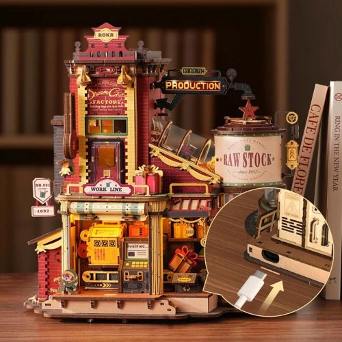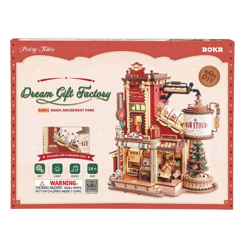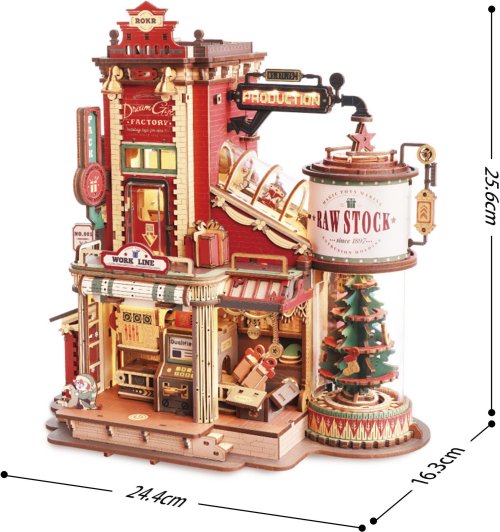 Robotime 3D Kouzelná továrna na dárky je jedinečná dřevěná skládačka, která se po sestavení promění v kouzelnou hrací skříňku. Okouzlí vás nejen svou detailní propracovaností, ale i zvukovými a světelnými efekty, díky nimž před vašima očima ožije celý proces výroby těch nejkrásnějších dárků v Santově dílně. S každým otočením ozubených koleček se otevře hravý svět plný fantazie a radosti.