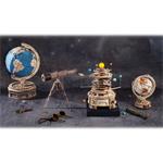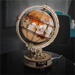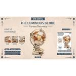Díky stavebnici glóbu značky Robotime z překližky se neztratíte ve světě, a to ani v noci. Prostřednictvím jeho stavby můžete dát odpočinout své mysli od každodenního shonu, prověřit své dovednosti, trpělivost a schopnost soustředění. Výsledný model můžete využít jako atraktivní noční lampičku, pro tento účel je uvnitř vybavený LED světelným zdrojem o nízké spotřebě, s nenápadným vypínačem a napájením v podobě rozšířeného microUSB, či USB-A konektoru. Glóbem je možno otáčet prostřednictvím částečně odhalené a poutavě zpracované soustavy převodů. Na svém obvodu je opatřený také mechanicky ovládanou lupou, s pomocí které přečtete i nejdrobnější nápisy na jeho povrchu. Členitá konstrukce je vyvedena v retro stylu, zdobí ji četné ornamenty, ale také stupnice k určování zeměpisné polohy, nebo označení časových pásem. Skládačka je dodávána v nesloženém stavu, balená v krabici.