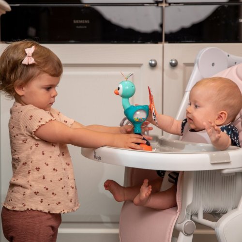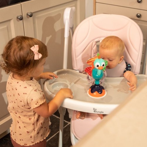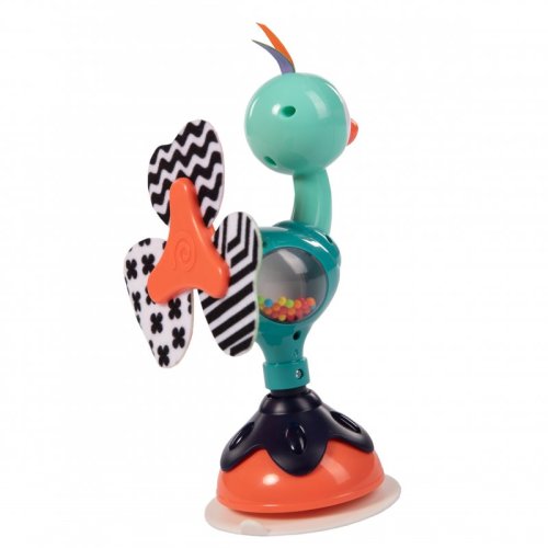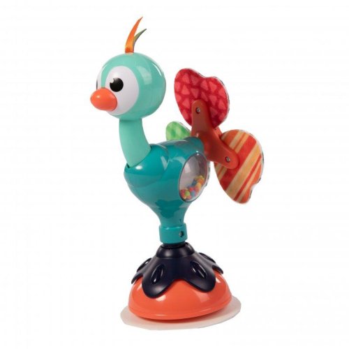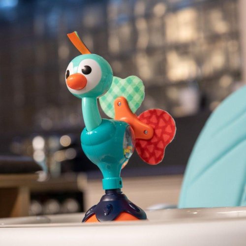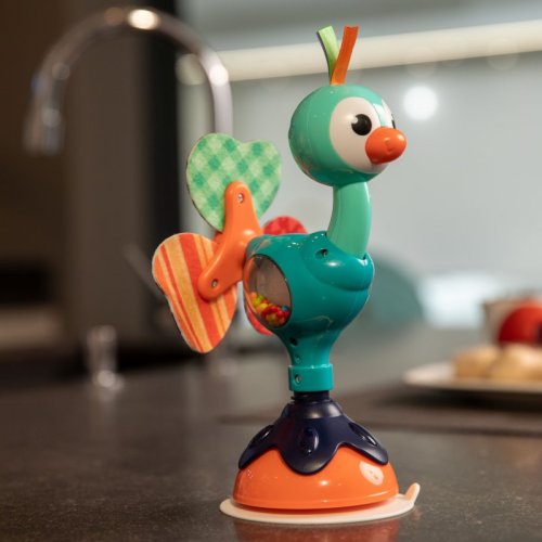 Plastová hračka s přísavkou, pomocí které se připevní k jídelnímu pultíku, a tím se zabrání tomu, aby ji Vaše dítko házelo na zem.