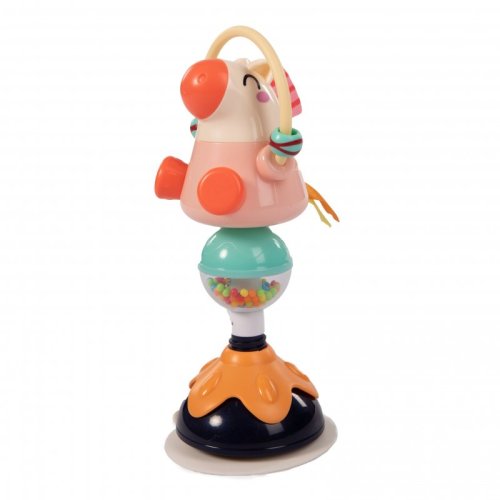 Plastová hračka s přísavkou, pomocí které se připevní k jídelnímu pultíku, a tím se zabrání tomu, aby ji Vaše dítko házelo na zem.