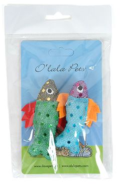 Hračka pro kočky se šantou v podobě rybky s třpytkami v různých barvách.