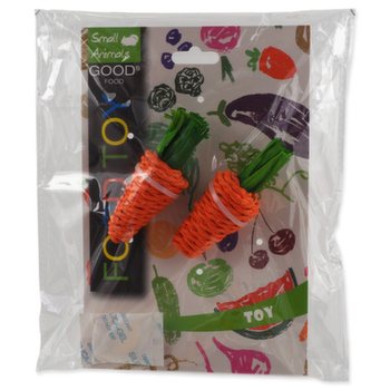 Hračka pletené sisalové mrkvičky vhodné pro králíky a drobné savce. Ideální na broušení zubů a drápků. Vyrobeno z papíru a kukuřičných listů. Obsahuje potravinářská barviva.