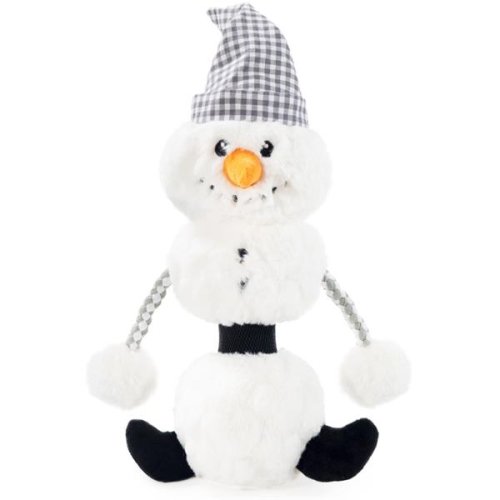 Měkká plyšová vánoční hračka pro psy, která má v těle zabudované pískátko, které láká psa k aktivní hře. Zvrásněné tělo a provazové ruce hračka lze využít k aportování a přetahování. Rozměry: 35 × 31,5 cm