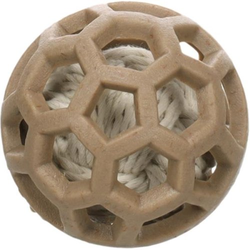 Hračka pro psy ve tvaru míče je vyrobená z termoplastické gumy (TPR) s bambusovým vláknem. Při kousání masíruje dásně a pomáhá omezovat tvorbu zubního plaku, čímž přispívá k přirozené péči o chrup. Pro větší vzrušení ze hry je uvnitř hračky další, menší míček. Díky děrované konstrukci je míč vhodný i pro psy se ztíženým dýcháním (brachycefalická plemena apod.). Rozměry (cca): Ø 7,6 cm Materiál: TPR (termoplastická guma), bambus Barva: hnědá, béžová Upozornění: Hračka není určena dětem. K použití pouze pod dohledem. Hračku pravidelně kontrolujte a v případě poškození přestaňte používat.