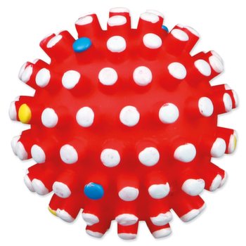 Hračka míček s bodlinami se zvukem pro psy. Tato hračka zabaví psa na dlouhou dobu. Míček je vyrobený z vinylu. Zvuk hračky bude psa neustále lákat ke hře. Bodlinky masírují dásně psa.