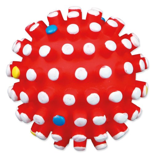 Hračka míček s bodlinami se zvukem pro psy. Tato hračka zabaví psa na dlouhou dobu. Míček je vyrobený z vinylu. Zvuk hračky bude psa neustále lákat ke hře. Bodlinky masírují dásně psa.