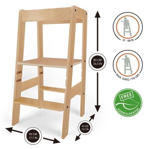 Věž se vyrábí z kvalitní přírodní překližky. Neobsahuje formaldehyd a prošla testy o nezávadnosti. Byla navržená tak, abyste ji mohli využít u většiny kuchyňských linek a koupelnových umyvadel.