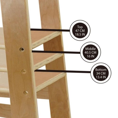 Plošinu, na kterou si vaše dítě stoupne, nastavíte podle svých potřeb. Na výběr máte 3 možnosti pro nastavení vhodné výšky – 34 cm, 40,5 cm nebo 47 cm. Vaše ratolest jistě zvládne vylézt na věž i sama.