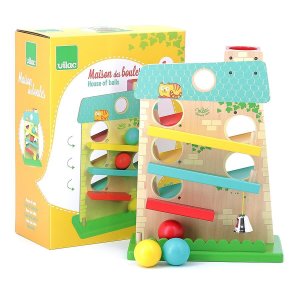 Barevný kaskádový domek značky Vilac je krásná dřevěná hračka, s kterou si děti užijí mnoho zábavy. Domek má 3 rampy na obou stranách a tak se dřevěné míčky pohybují shora dolů, ze strany na stranu. A když míček dojede do cíle, zazvoní kovový zvoneček. Poutavá hračka podporující logické myšlení.
