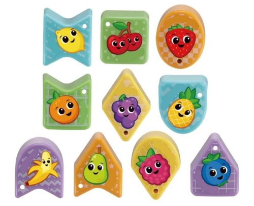 Každý dílek zdobí jiný obrázek ovoce. Dítě se během hraní učí rozlišovat tvary. Veselé jablko pomáhá rozvíjet koordinaci ruka-oko, prostorové vnímání, logické myšlení a jemné motorické dovednosti. Hračka se vyrábí z 90 % z recyklovaných materiálů. Je tedy šetrnější k přírodě.