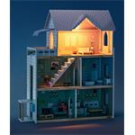 Kvalitní třípatrový domeček pro panenky Molly značky Woody nabízí spoustu místností pro hraní. Jídelna, obývací pokoj a koupelna, stejně jako ložnice nabízejí dostatek prostoru pro hru. Z přízemí do prvního patra se mohou panenky svézt výtahem. U vchodu je umístěný domovní zvonek, který oznamuje příchod návštěvy. Třetí patro je vybavené nejen prostornou terasou a markýzou, ale i funkčním světlem. Otevřená přední strana usnadňuje hraní a umožňuje také několika dětem hrát si současně.