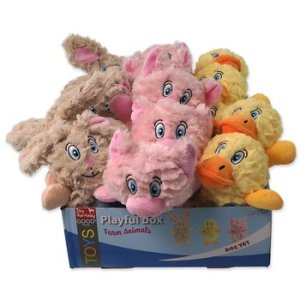 Hračky Dog Fantasy Playful Box Farm zvířat pískací mix 21cm 24ks