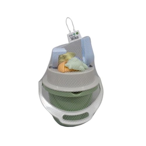 sada obsahuje kyblík, sítko, hrabičky, lopatičku a 4 bábovičky