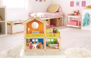 Rozměry: 58x24x52 cm Věk: 3+ Materiál: vysoce kvalitní dřevo z udržitelných a obnovitelných zdrojů Ručně domalováno ekologickými barvami Zvířátka a postavy nejsou součástí balení