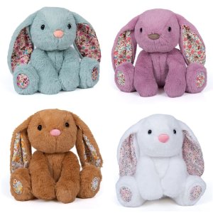 Plyšový králík s látkovýma ušima 25 cm – čtyři barvy bílá, růžová, hnědá a modrá.