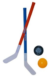 Plastová hokejka pro malé sportovce o velikosti 72 cm, balení obsahuje 2 ks a také florbalový míček a puk.