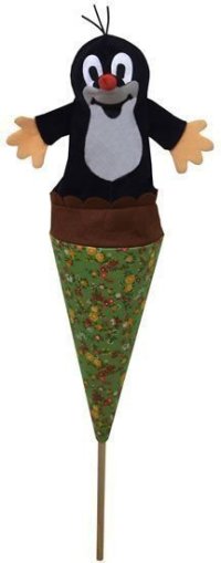 Velký kornoutový maňásek Krtečka, textilní, ovládaný dřevěnou tyčkou.Nevhodné pro děti do 3 let, nebezpečí píchnutí