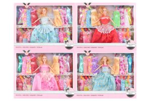 Plastová panenka o velikosti cca 29 cm a 20 náhradních barevných šatů.