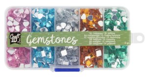 Sada krásných barevných drahokamů v 5 barvách a 2 tvarech (kulaté diamanty a ve tvaru hvězdy) – celkově tedy 10 různých dekorativních kamínků.
