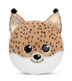 Kulatý plyšový polštářek GLUBSCHIS rys Lenzo ve tvaru rysí hlavy je nejen heboučký, ale také fascinuje okouzlujícím výrazem obličeje s velkýma třpytivýma očima ve zlaté barvě, lesklým černým nosem i …