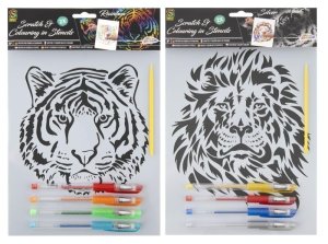 Vyškrabávací/vymalovávací obrázky s gelovými pery – balení obsah opbrázek + 4 gelová pera.