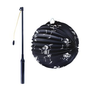 Lampion s halloweenským v černé barvě s bílým potiskem koster ti nesmí chybět na lampionovém průvodu!