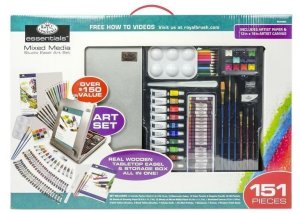 Vše co potřebujete ve výtvarném ateliéru uložené v praktickém cestovním dřevěném stříbrném kufříku, který zároveň slouží i jako stojan na plátno.