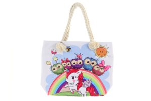 Kabelka přes rameno s motivem jednorožce a soviček.