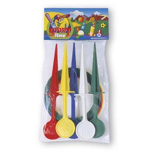 Veselá hra házení kroužků na cílové hroty pro malé i velké.