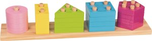 Třídění barev a tvarů kombinované s různým počtem otvorů pro nasouvání na stejně vysoké kolíky.