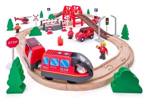 Vláčkodráha s elektrickou mašinkou, hasiči, 60 dílů