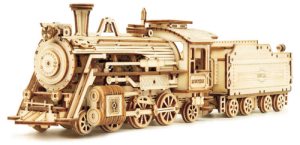 Detailní model parní lokomotivy s tendrem, v měřítku 1:80.