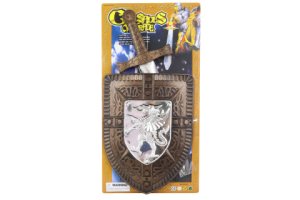 Sada obsahuje plastový meč o délce 44,5 cm a plastový rytířský štít o rozměru 23,5 x 31 cm.