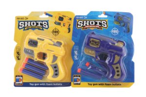 Pistole na pěnové náboje 12x14cm plast + 3 ks nábojů 2 barvy na kartě.