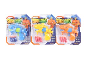 Plastová pistolka ve tvaru dinosaura na pěnové náboje.